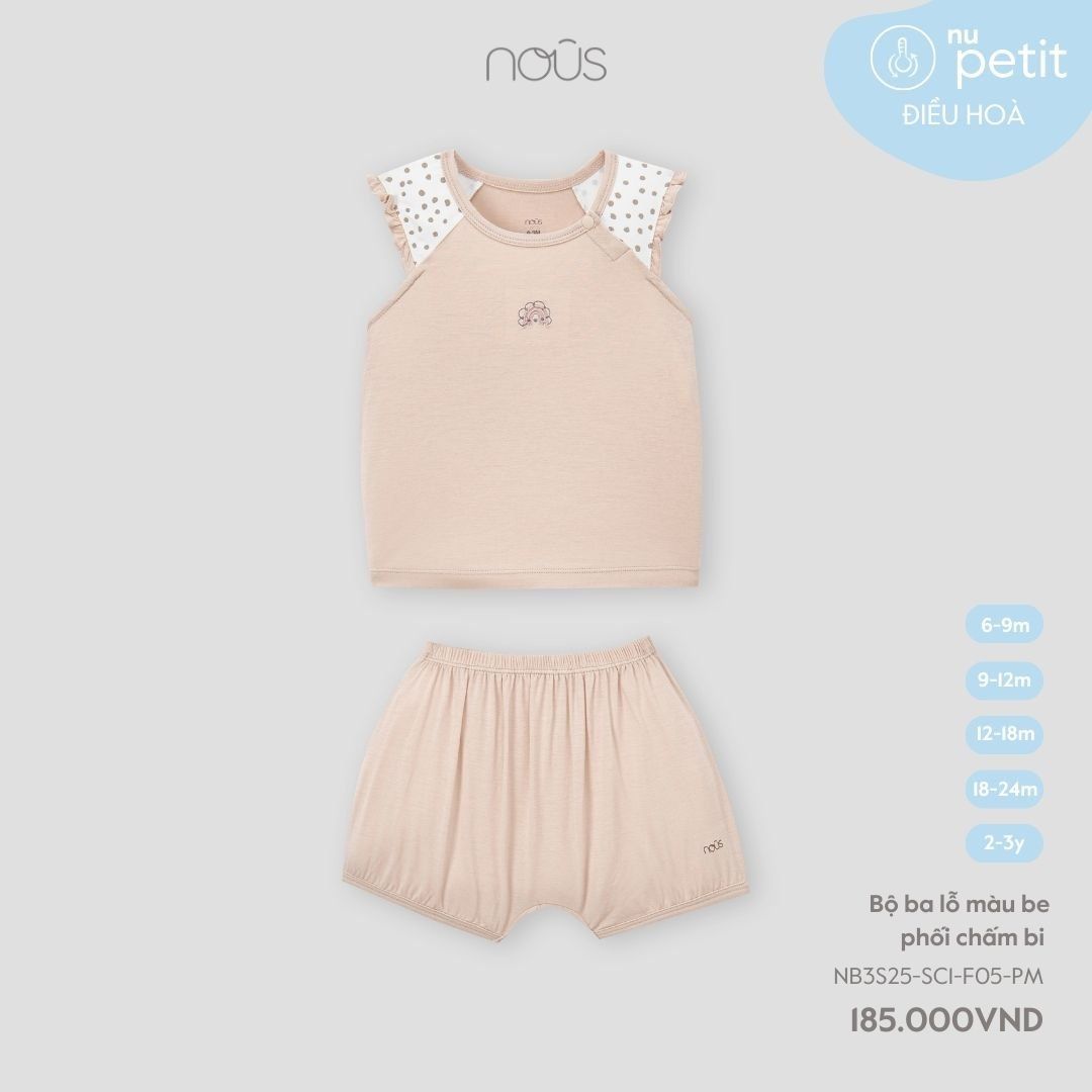 Nous Bộ ba lỗ màu be phối chấm bi 6,9,12,18M,2Y