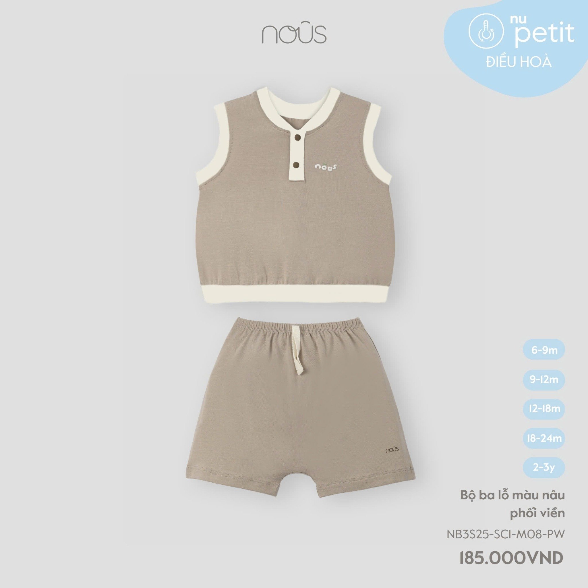 Nous Bộ ba lỗ màu nâu ghi 6,9,12,18M, 2Y