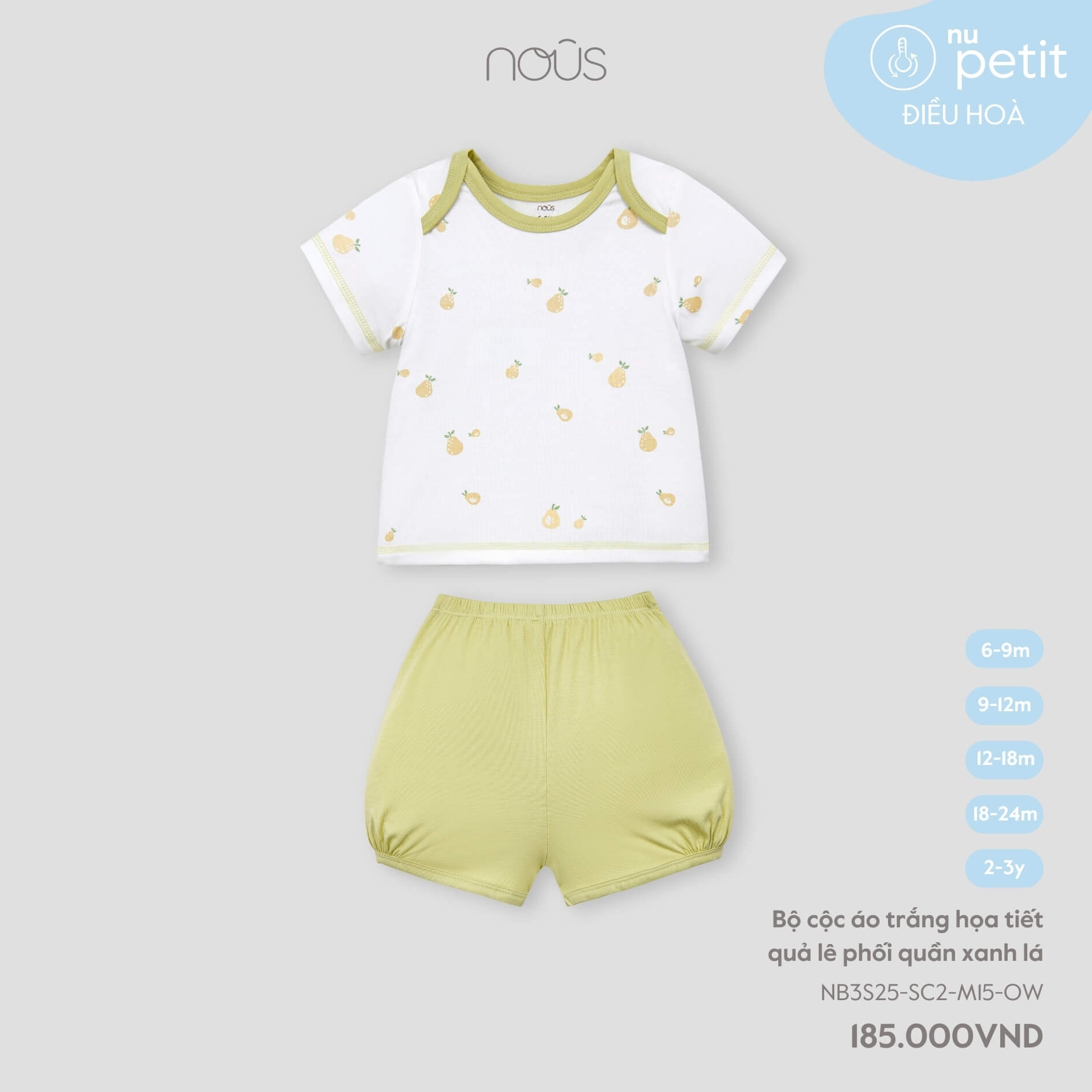 Nous Bộ cộc áo trắng họa tiết quả lê phối quần xanh lá 6,9,12,18M,2Y