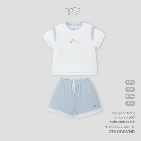 Nous Bộ cộc áo trắng in con voi phối quần xanh da trời 9,12,18M,2Y