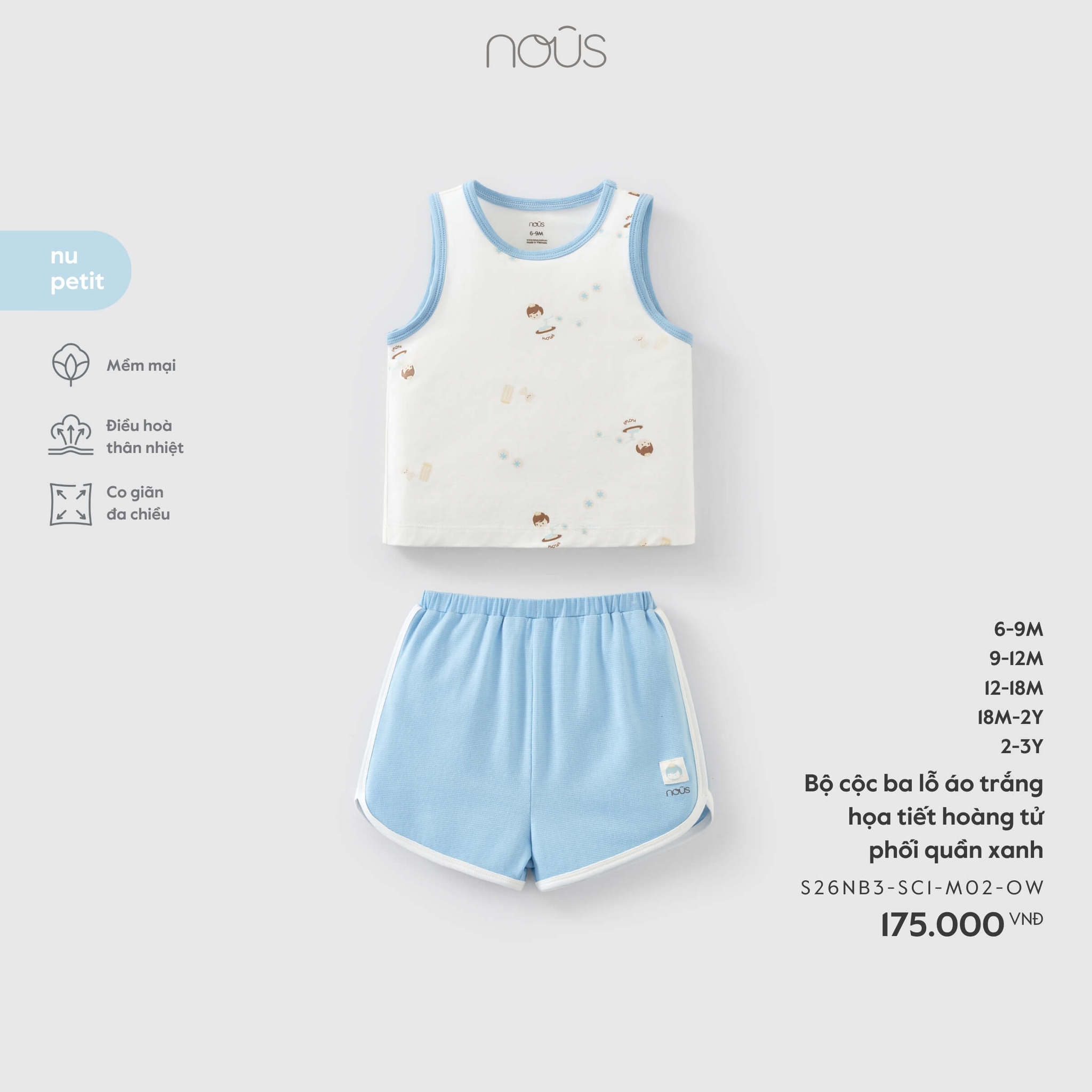 Nous Bộ cộc ba lỗ áo trắng họa tiết hoàng tử phối quần xanh (6M,9M,12M,18M,2Y)
