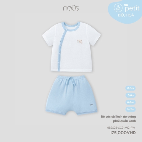 Nous Bộ cộc cài lệch áo trắng phối quần xanh 6,9M