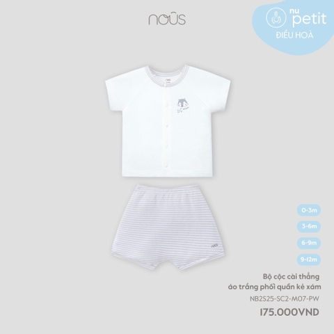 Nous Bộ cộc cài thẳng áo trắng phối quần kẻ xám 6,9M