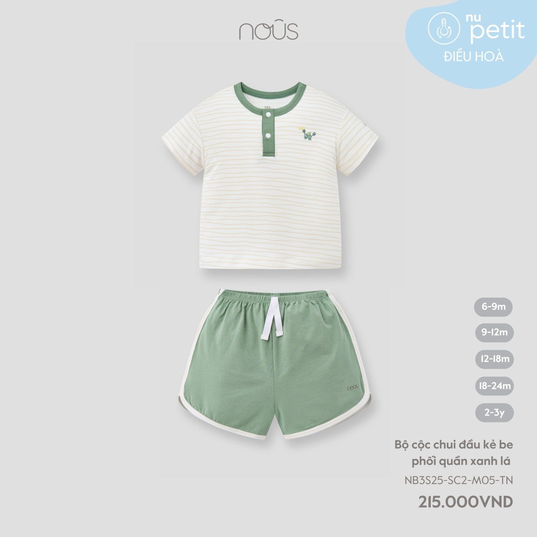 Nous Bộ cộc chui đầu kẻ be phối quần xanh lá 12,18M,2Y