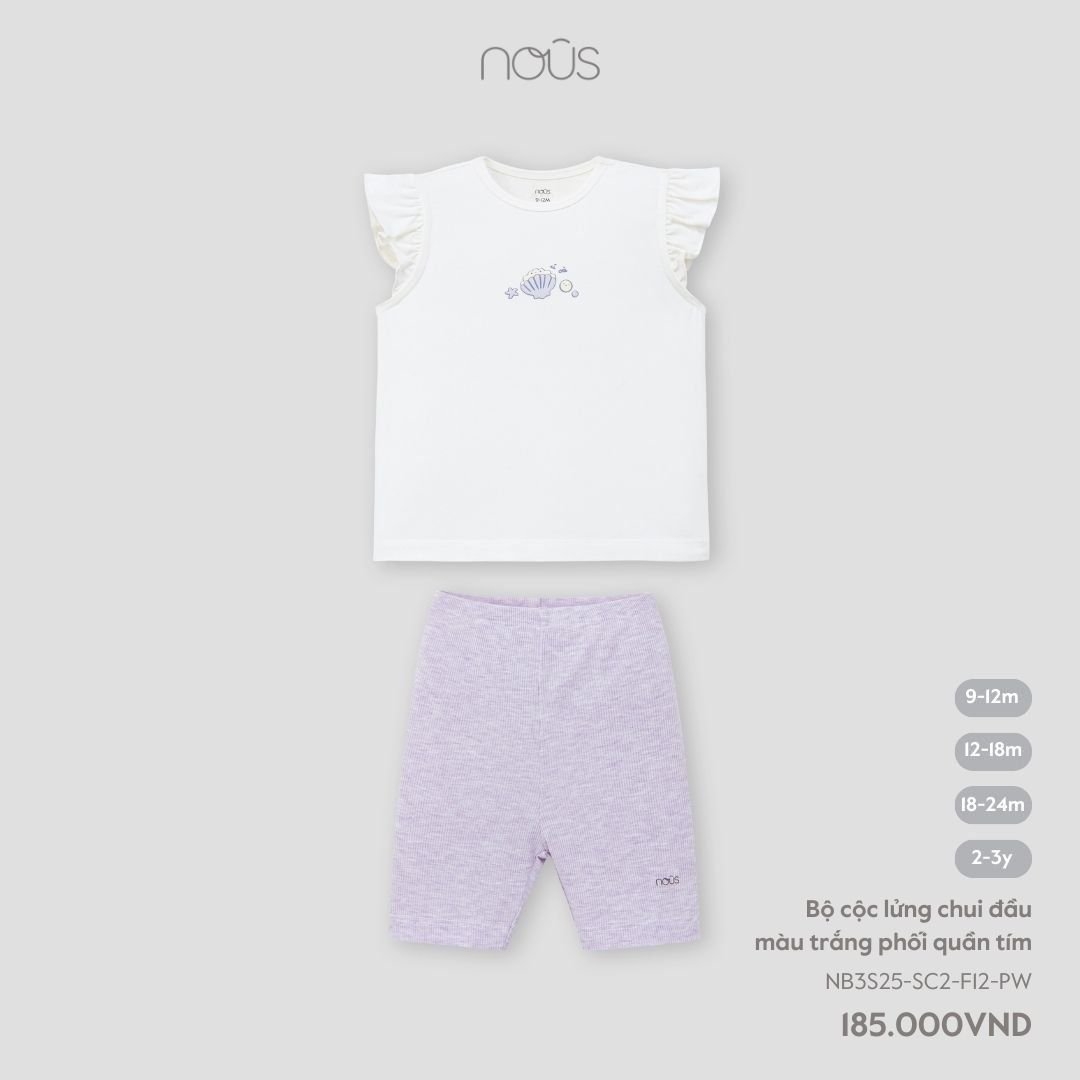 Nous Bộ cộc lửng chui đầu màu trắng phối quần tím 9,12,18M,2Y