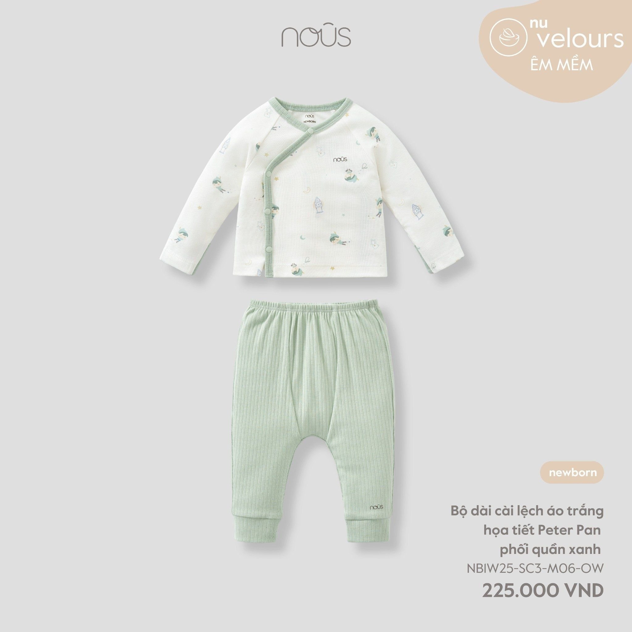Nous Bộ dài cài lệch áo trắng họa tiết Peter Pan phối quần xanh NB