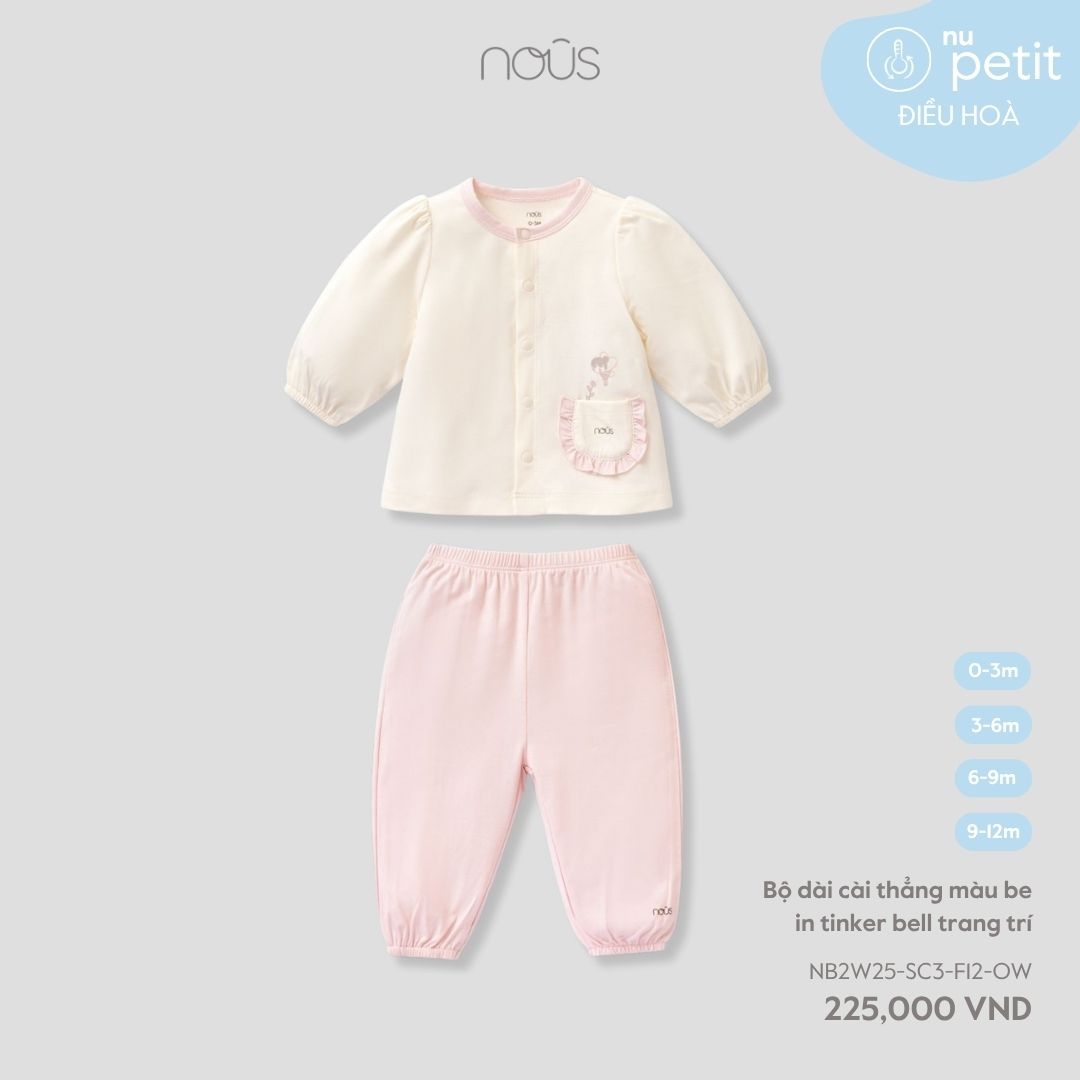 Nous Bộ dài cài thẳng màu be in tinker bell trang trí 0,3,6,9,12,18M,2Y