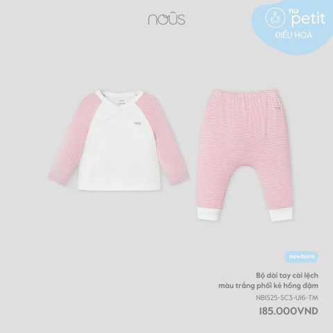 Nous Bộ dài tay cài lệch màu trắng phối kẻ hồng đậm NB