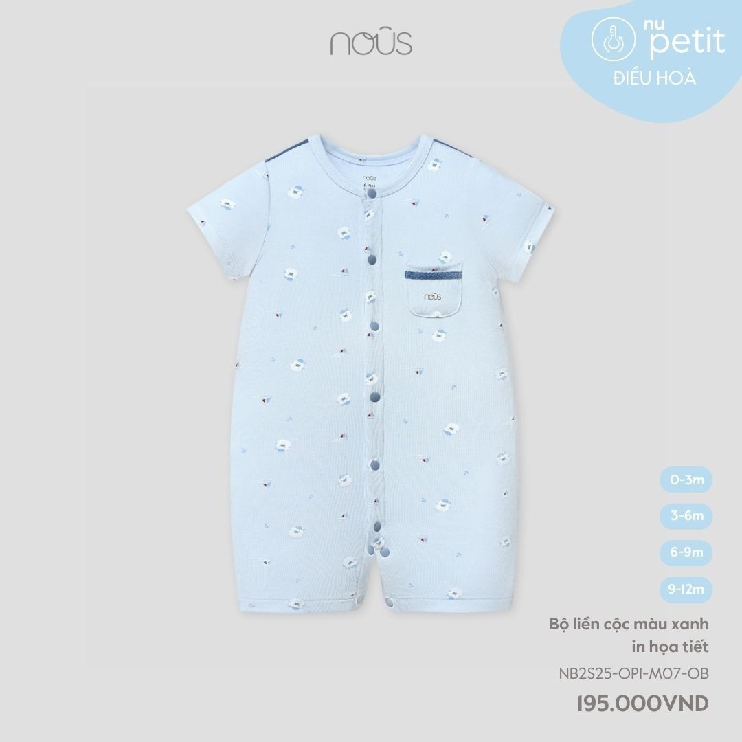 Nous Bộ liền cộc màu xanh in họa tiết 0,3,6,9M