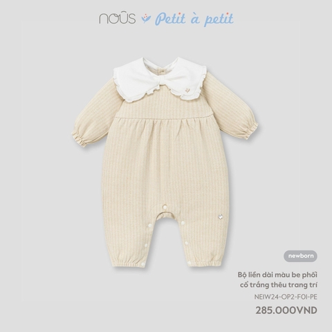 Nous Bộ liền dài màu be phối cổ trắng thêu trang trí NB