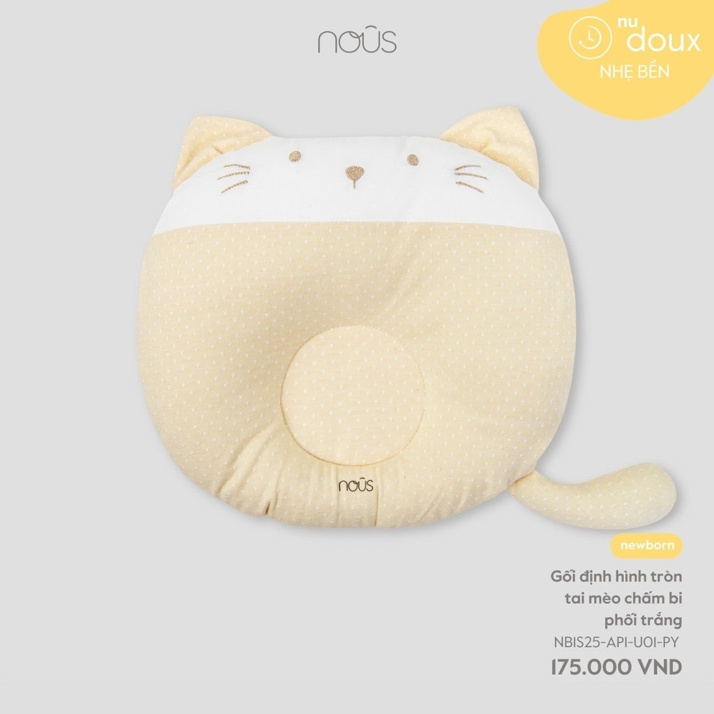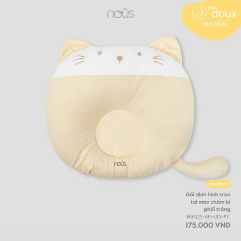 Nous Gối định hình tròn tai mèo chấm bi phối trắng NB