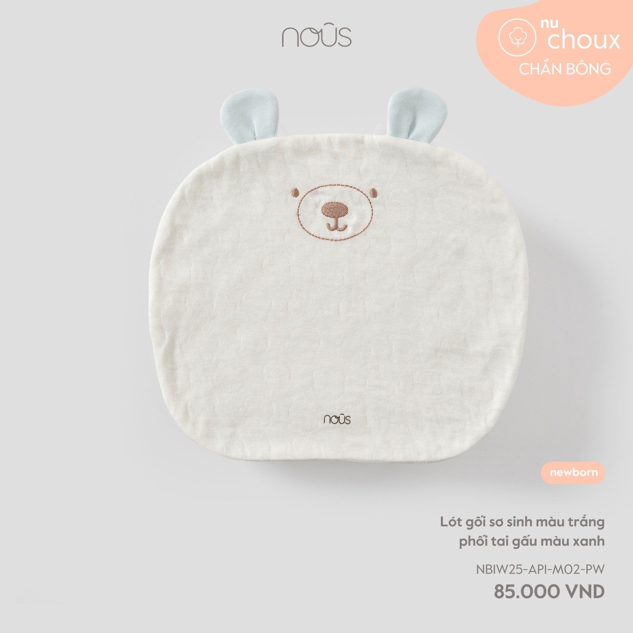 Nous Lót gối sơ sinh màu trắng phối tai gấu màu xanh NB