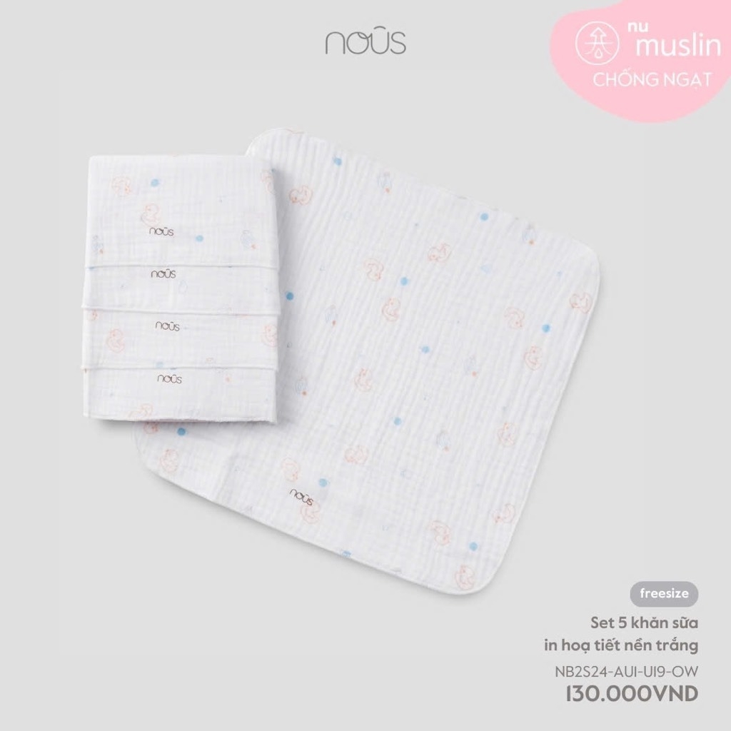 Nous Set 5 khăn sữa in hoạ tiết nền trắng