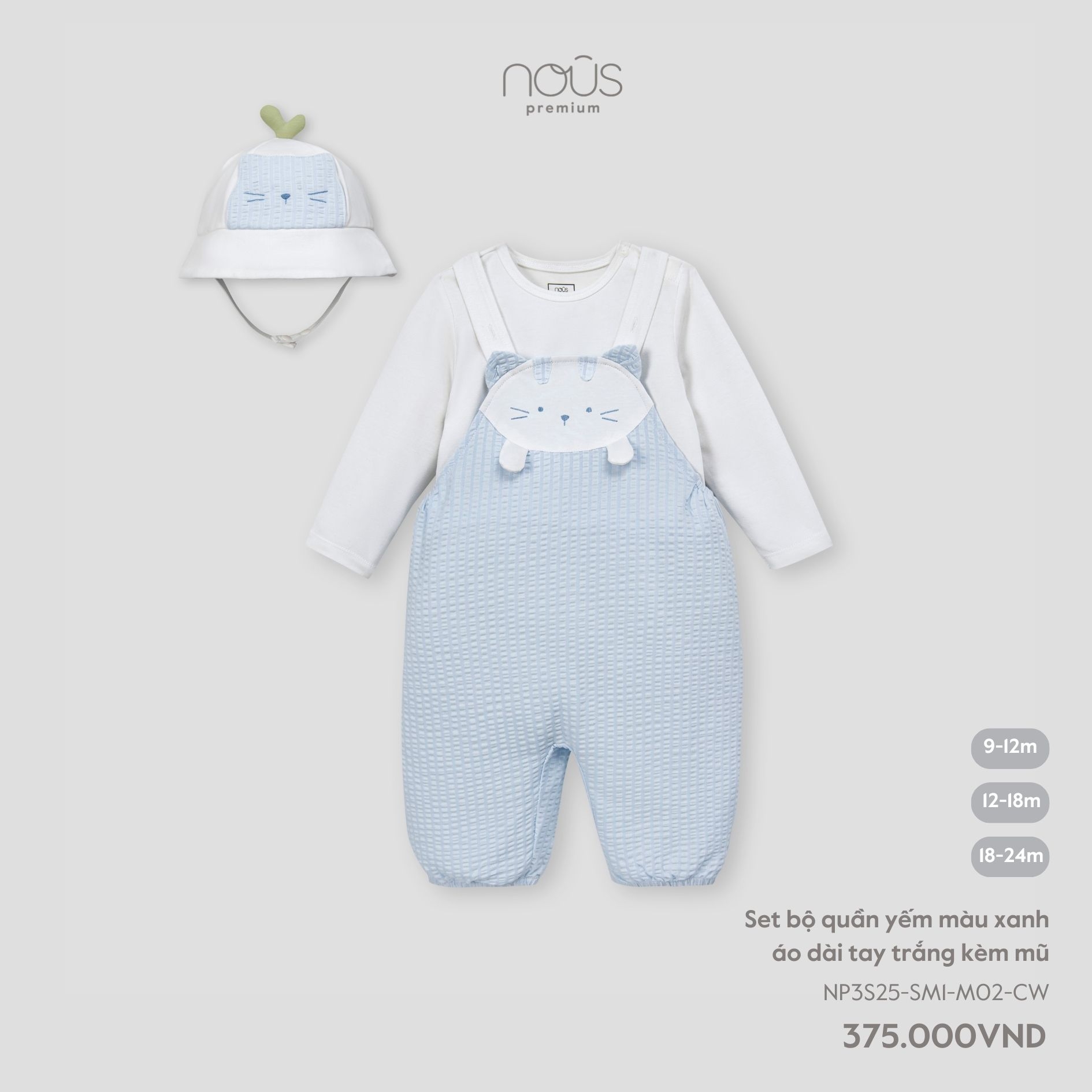 Nous Set bộ quần yếm màu xanh áo dài tay trắng kèm mũ 9,12M