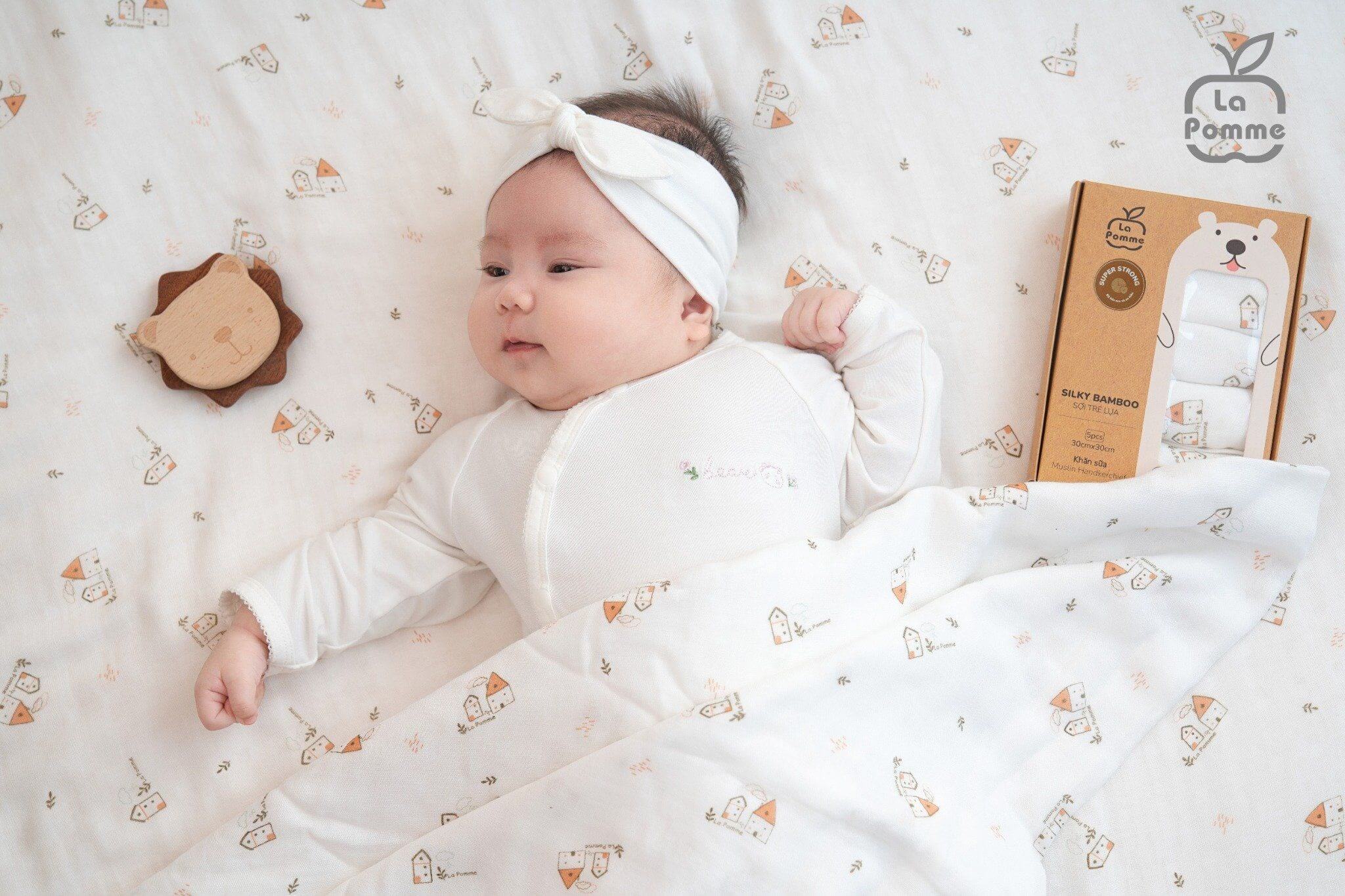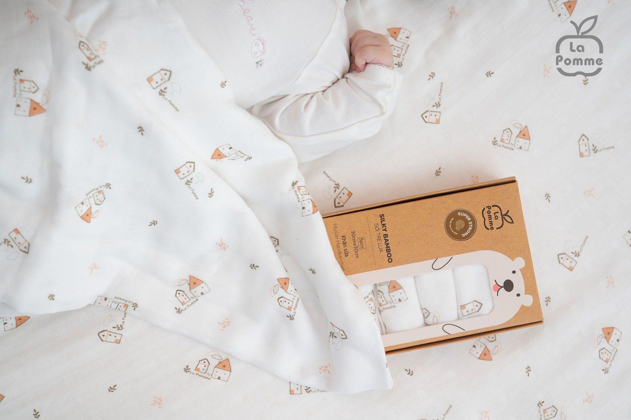 Set 5 Khăn sữa sợi tre lụa La Pomme (30x30cm) - Trắng (Ngôi làng)