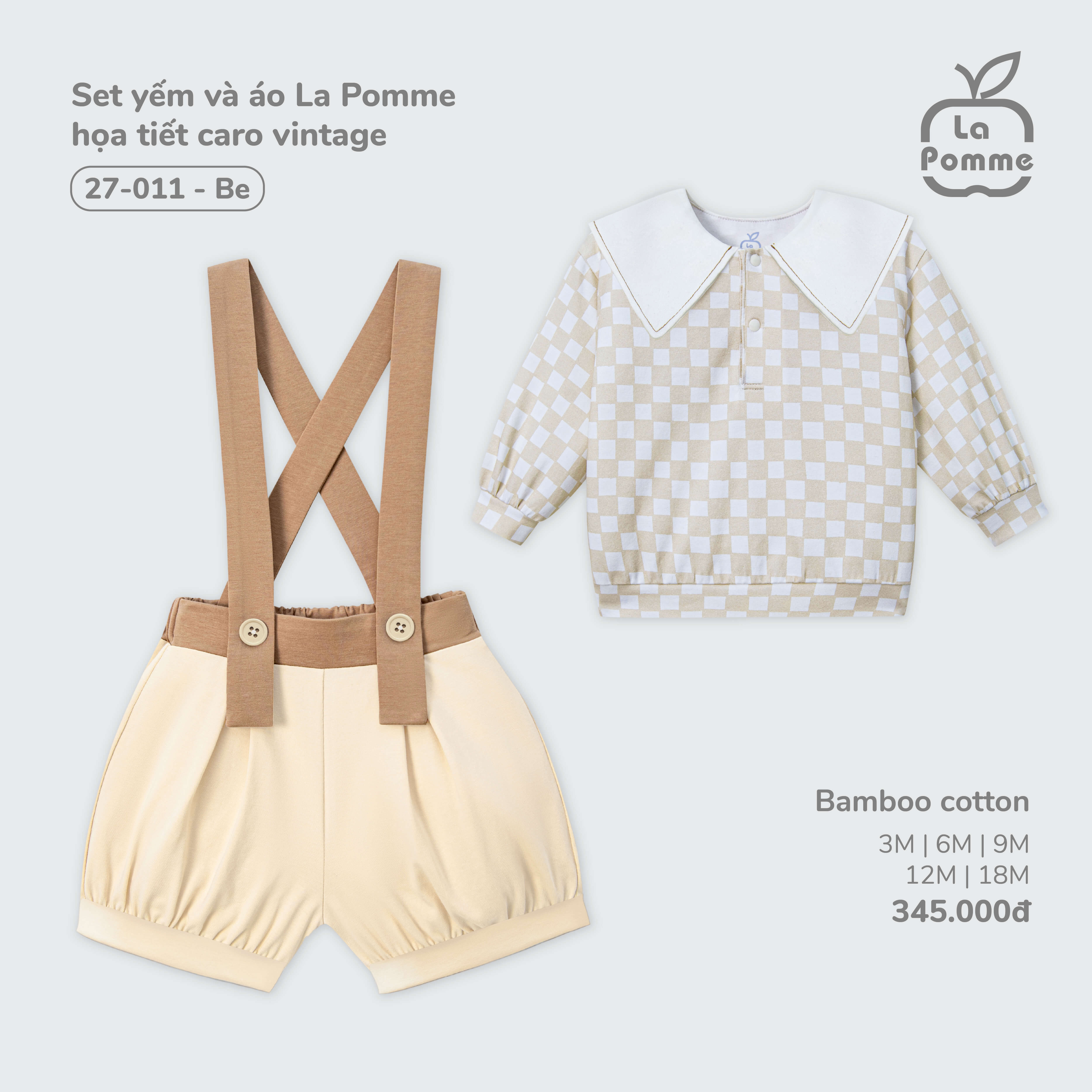 Set yếm và áo La Pomme họa tiết caro vintage - 9,12,18M Be