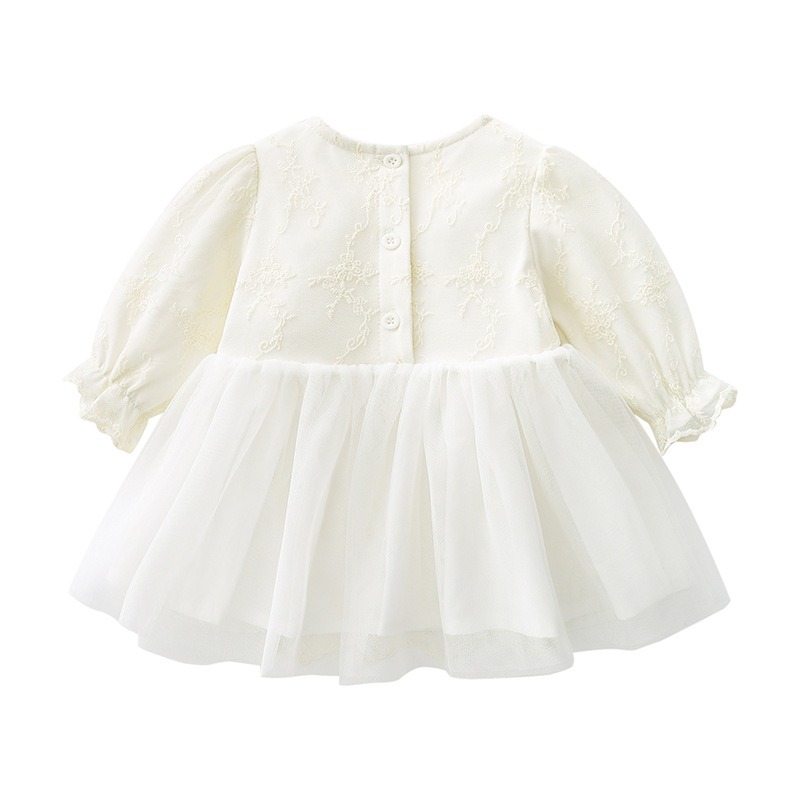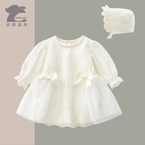 Váy nơ ren cho bé gái màu trắng, kèm mũ ANBLOO