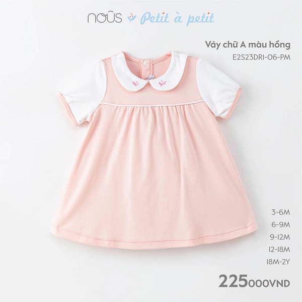 Với các bé gái, váy chữ A là một item không thể thiếu trong giỏ quần áo cá nhân, nhất là trong mùa hè. Đặc biệt với các trẻ sơ sinh và trẻ nhỏ từ 0 - 2 tuổi, những chiếc váy xinh xắn, ít họa tiết để đảm bảo an toàn, được làm từ các chất liệu mềm mại, thấm mồ hôi tốt, thông thoáng khí luôn là lựa chọn được ưu tiên hàng đầu. Váy chữ A Nous được thiết kế thời trang, sử dụng chất liệu Petit vô cùng mềm mại và an toàn cho làn da nhạy cảm của trẻ sơ sinh và trẻ nhỏ.