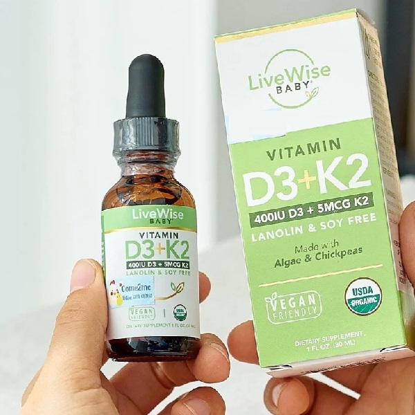 Không chỉ giúp cho hệ xương và răng của bé luôn vững chắc, khỏe mạnh, mà sự kết hợp hoàn hảo giữa 2 loại vitamin D3 và K2 còn giúp tăng khả năng vận chuyển canxi và hạn chế tối đa tình trạng xơ vữa động mạch hay các bệnh lý nguy hiểm khác. Đối với trẻ nhỏ, nếu không cung cấp đủ lượng vitamin D3 và K2 thì trẻ không được phát triển tầm vóc tốt nhất, khung xương không phát triển, trẻ dễ mắc bệnh còi xương,... Do đó, các bác sĩ nhi khoa đều khuyên mẹ nên bổ sung thêm một loại Vitamin D cho trẻ. Nếu mẹ là một tín đồ hàng Mỹ nhập khẩu và theo xu hướng hữu cơ organic thì Vitamin D3K2 LiveWise 400IU sẽ là một gợi ý lựa chọn đáng tham khảo mẹ không nên bỏ qua.